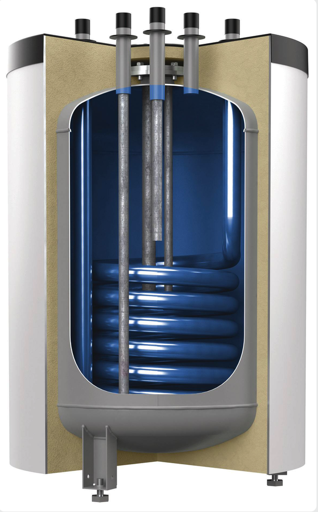 Podgrzewacz wyposażony jest w wewnętrzną karbowaną wężownicę. Zasobnik wykonany jest ze stali zabezpieczonej powłoką emaliowaną zgodną z normą DIN 4753 T3. Izolację podgrzewacza stanowi 30-milimetrowa warstwa pianki poliuretanowej (PUR) pokrytej płaszczem foliowym.
