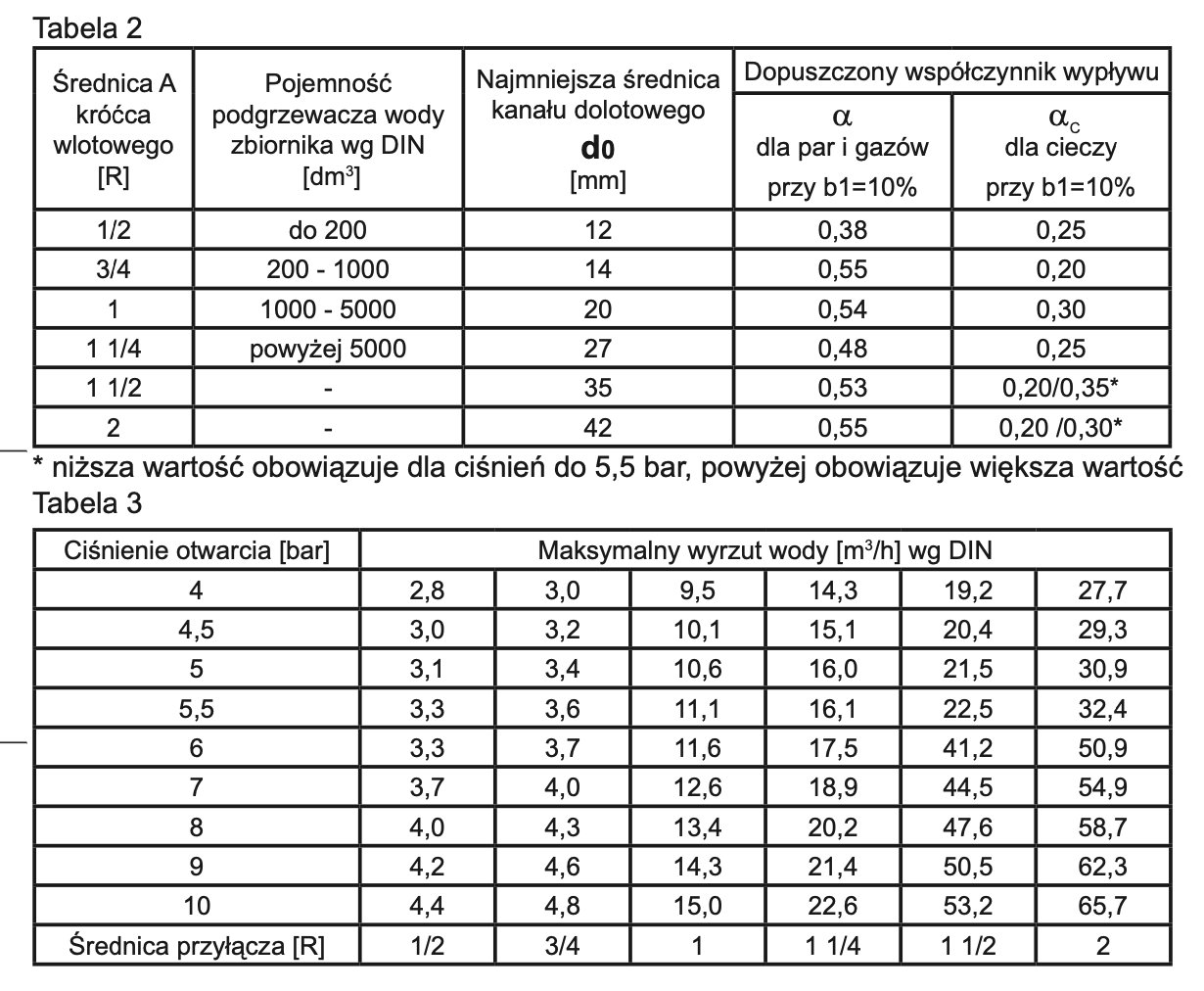 - ciśnienie otwarcia: 6 bar