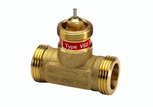 Zawór grzybkowy dwudrogowy Danfoss VS2 20/2.5/5mm , gwint zewnętrzny, 065F2120  to dwudrogowy zawór regulacyjny z gwintem zewnętrznym zaprojektowany do pracy z elektrycznymi siłownikami Danfoss AMV 150, AMV(E) 10, AMV(E) 20, AMV(E) 30 lub elektrycznymi siłownikami firmy Danfoss ze sprężyną powrotną AMV(E) 13, AMV(E) 23 oraz AMV(E) 33.