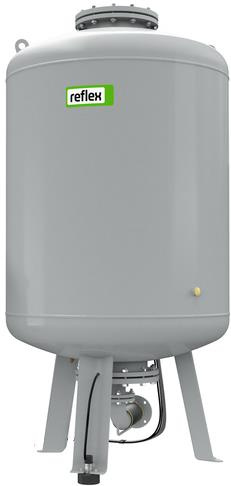 Zbiornik podstawowy Reflex RG 3000 10 bar do Reflexomat to zbiornik przeponowy przeznaczony do kompresorowych układów stabilizacji ciśnienia Reflexomat. Urządzenie kompensuje wahania objętości czynnika w zamkniętych instalacjach grzewczych i chłodniczych, utrzymując zadaną wartość ciśnienia roboczego z dokładnością do ± 0,1 bar. Dzięki konstrukcji membranowej woda robocza pozostaje odseparowana od poduszki gazowej, co ogranicza przenikanie tlenu i wydłuża żywotność instalacji.