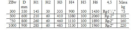 Zbiornik ma konstrukcję pionową, cylindryczną, z dwoma elipsoidalnymi dennicami na obu końcach. Jest wyposażony w różne króćce przyłączeniowe i otwory, które umożliwiają podłączenie go do systemu grzewczego oraz instalacji pomiarowych, takich jak termometry i czujniki. Zbiornik jest wykonany ze stali węglowej, co zapewnia jego trwałość, a na zewnątrz jest zabezpieczony antykorozyjnie, co zapobiega jego degradacji.